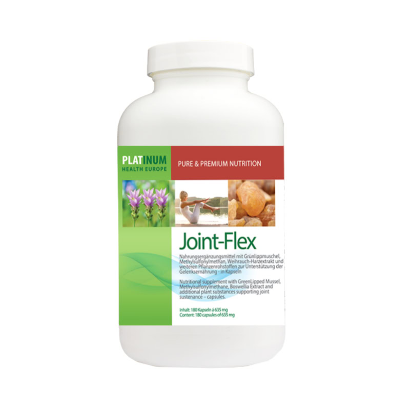Joint-Flex wurde entwickelt, um die optimale Gesundheit und normale Beweglichkeit aller Gelenke, Bänder und Sehnen des menschlichen Körpers mit Pflanzen und natürlichen Vitalstoffen wie Kurkuma, Weihrauch und Weidenrinde zu unterstützen.