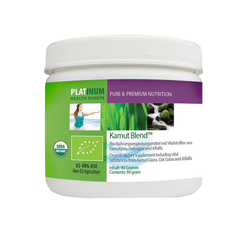Kamut Blend enthält Saft aus Kamut, einer Urweizensorte aus dem ägyptischen Nildelta. Das Produkt wird mit einem ein wenig süß schmeckenden Hafergrassaft abgerundet und besonders mineralreichem Pulver aus Alfalfa Blättern ergänzt.